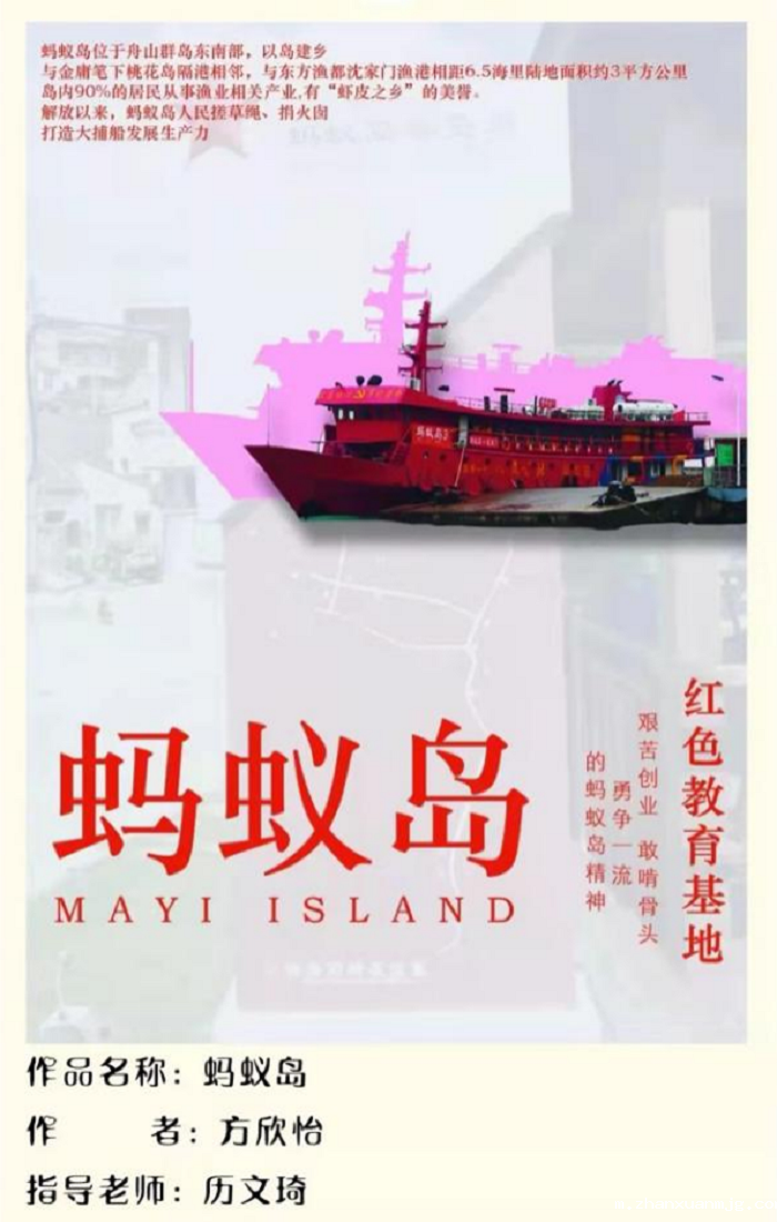 本次大赛由浙江省大中学生校园文化节组委会主办,由浙江海洋大学、中共舟山市普陀区委宣传部、共青团舟山市普陀区委员会、舟山市普陀区蚂蚁岛管理委员会、舟山市普陀区融媒体中心共同承办。大赛以蚂蚁岛为设计实践区,选题聚焦海岛文化空间设计和海岛文旅IP设计,在提升海岛经济价值、生态价值和美学价值的同时,推动广大青年在共同富裕示范区建设中展现担当作为。